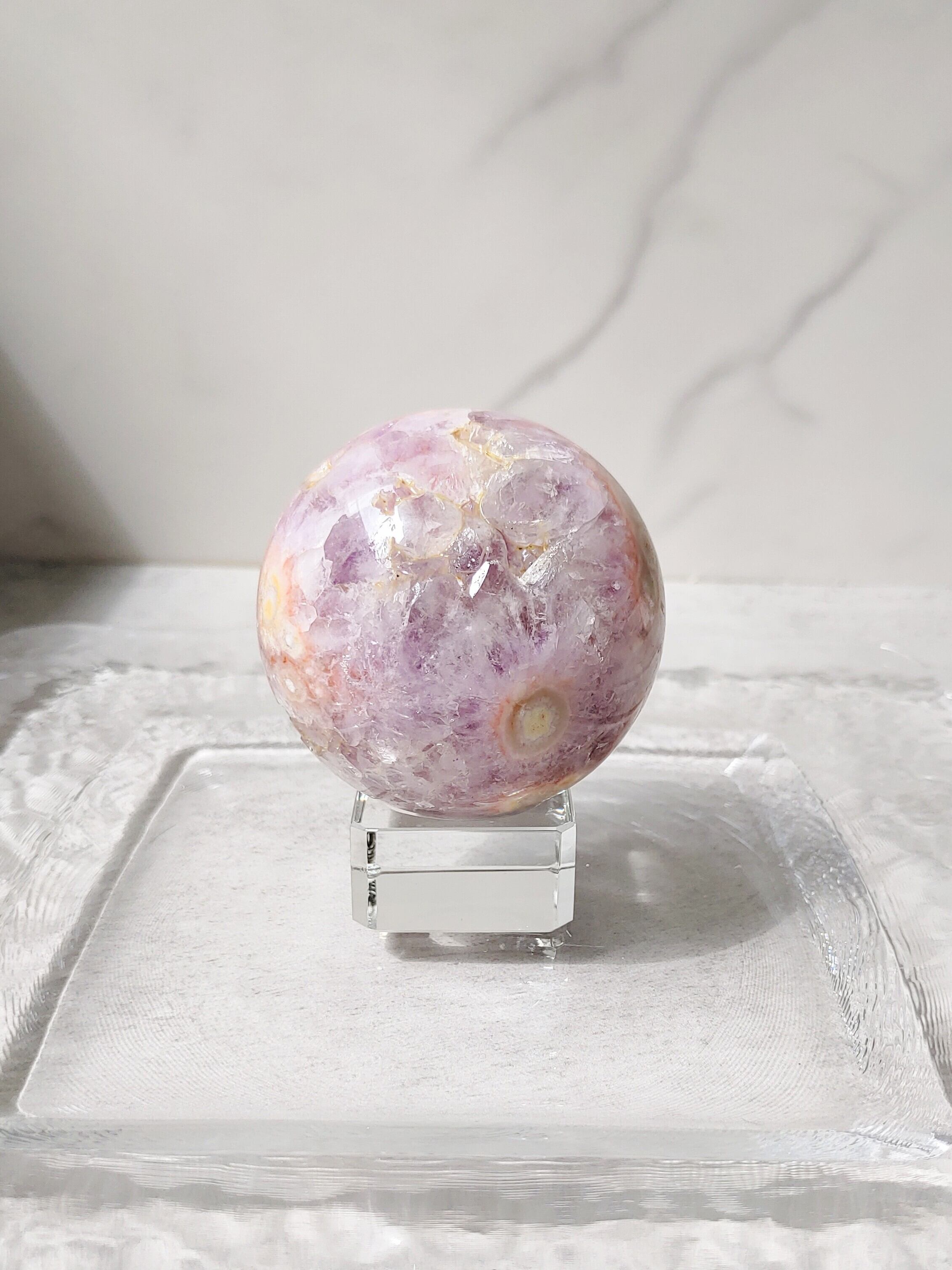 ピンクアメジスト&フラワーアゲートのスフィアが入荷しました。店主haruの大好きな子たちの共演にメロメロです。